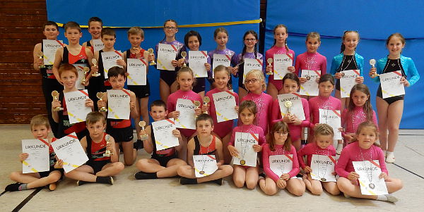 konnten. An 4 Geräten musste eine einfache Übung gezeigt werden. Die 18 Mädchen und Buben des ATSV waren mit
